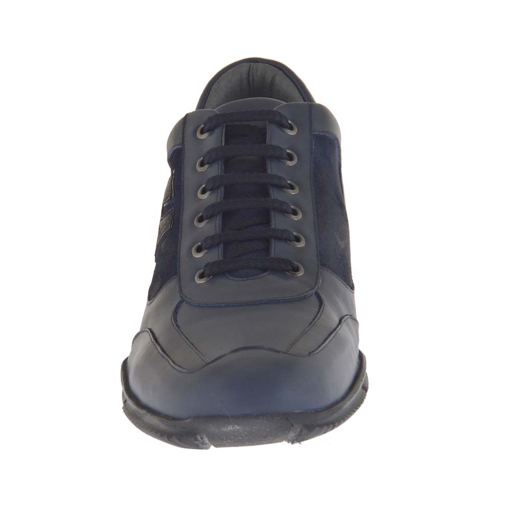Scarpa da uomo sportiva stringata, in pelle e camoscio colore blu, fondo gomma, fodera pelle. Disponibile nelle taglie grandi.