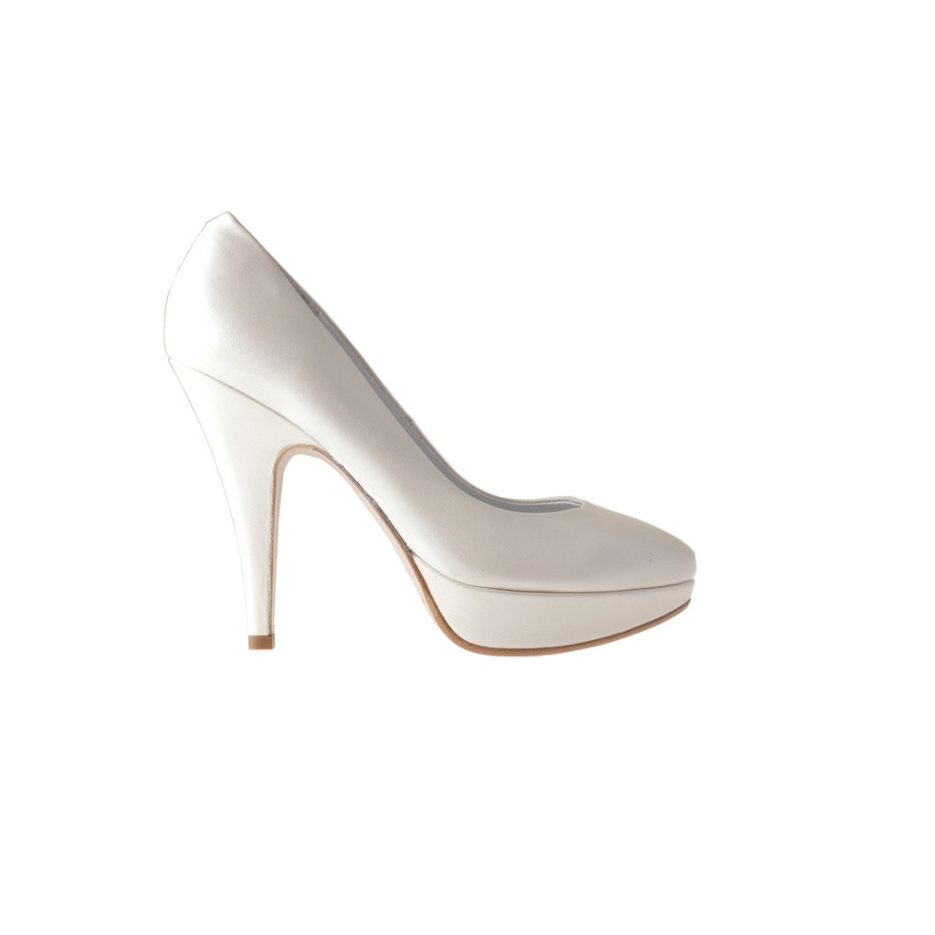 Platform pump, 11 cm. high heel and 2 cm. high platform, in pearled ivory leather, leather sole, leather lining.