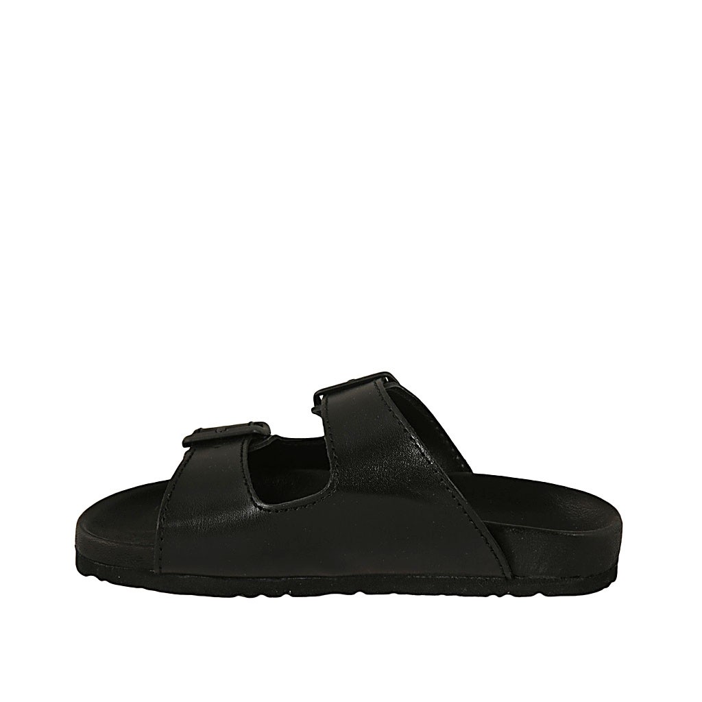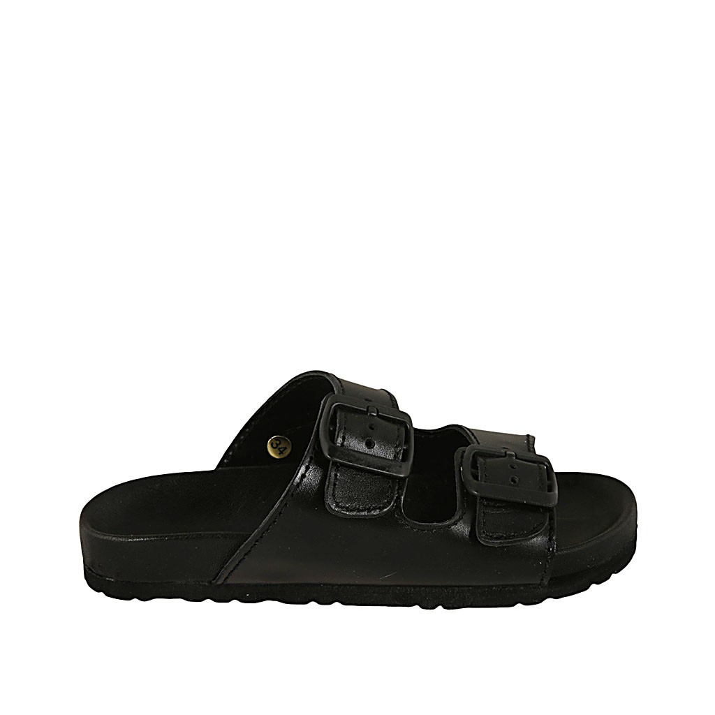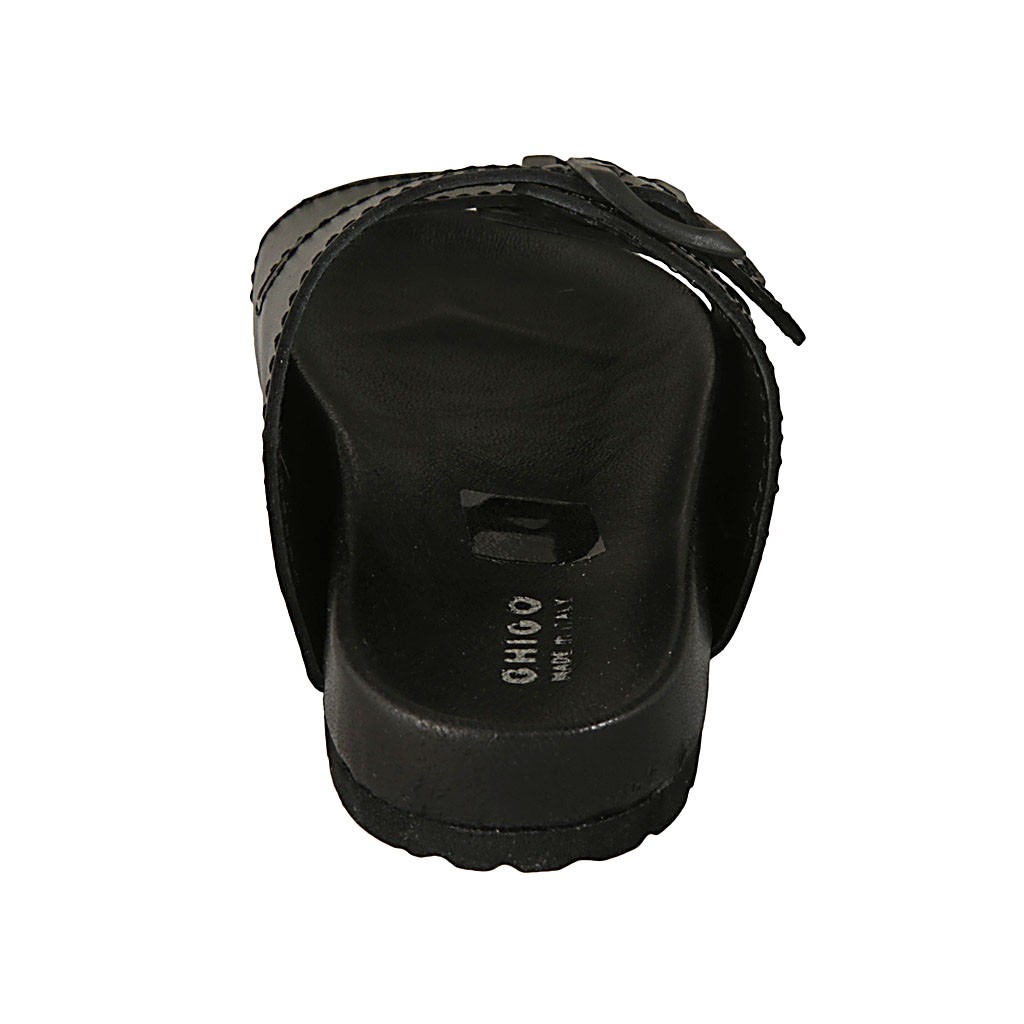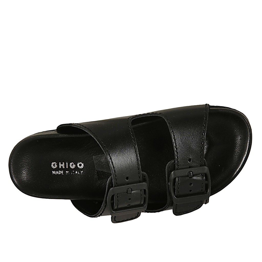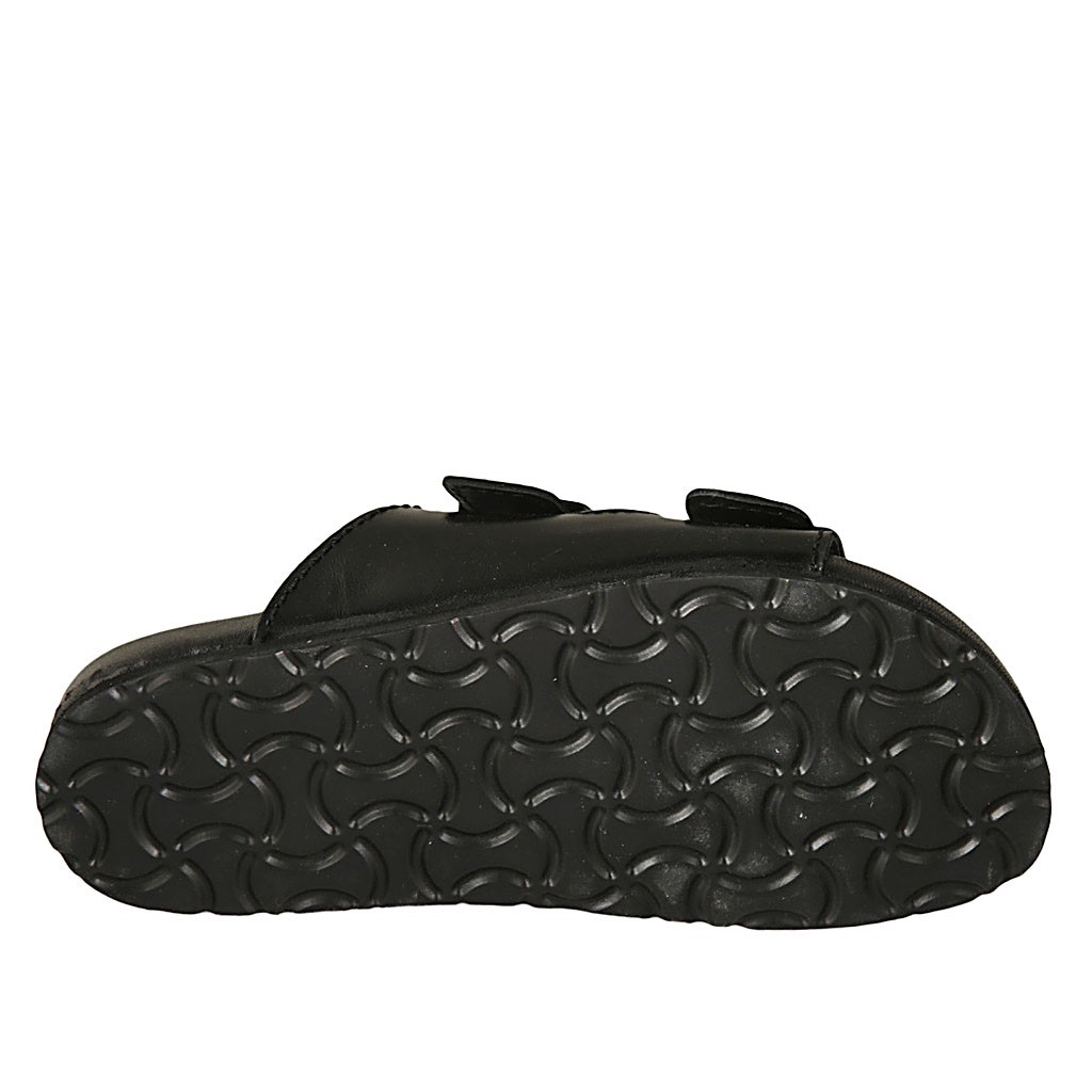 The slipper is certainly the most comfortable shoe for the summer season. This model in black leather with double buckle band is very comfortable and practical to wear. The rubber sole makes it suitable for both a casual summer look in free time and for a beach look. Also available in a leopard print version.