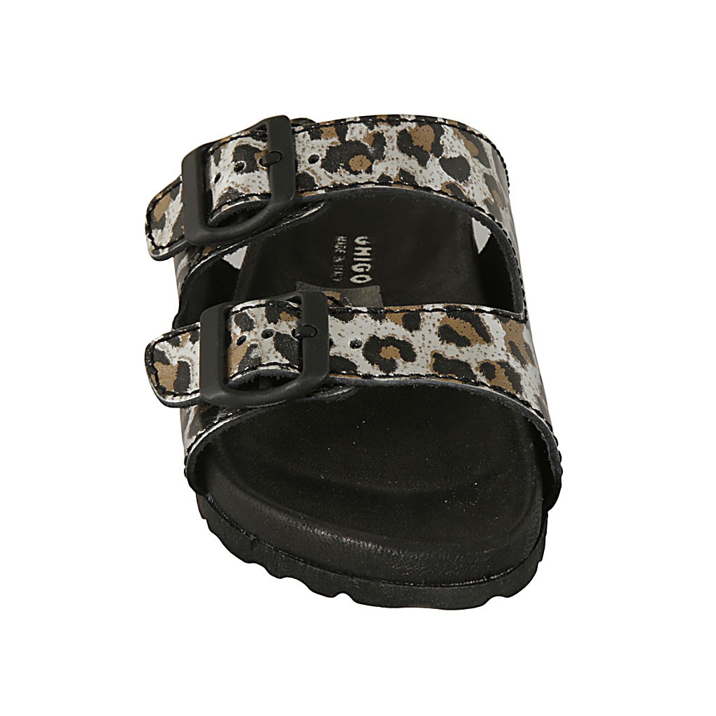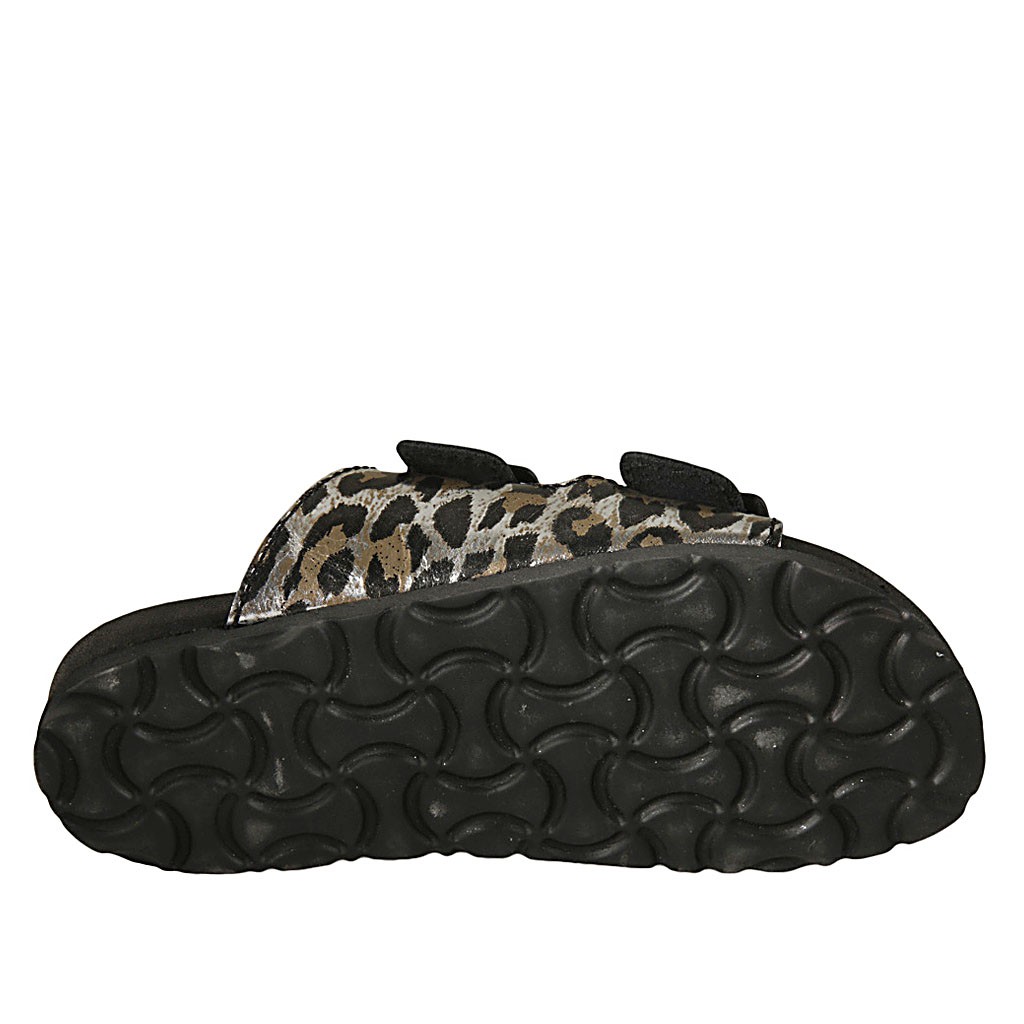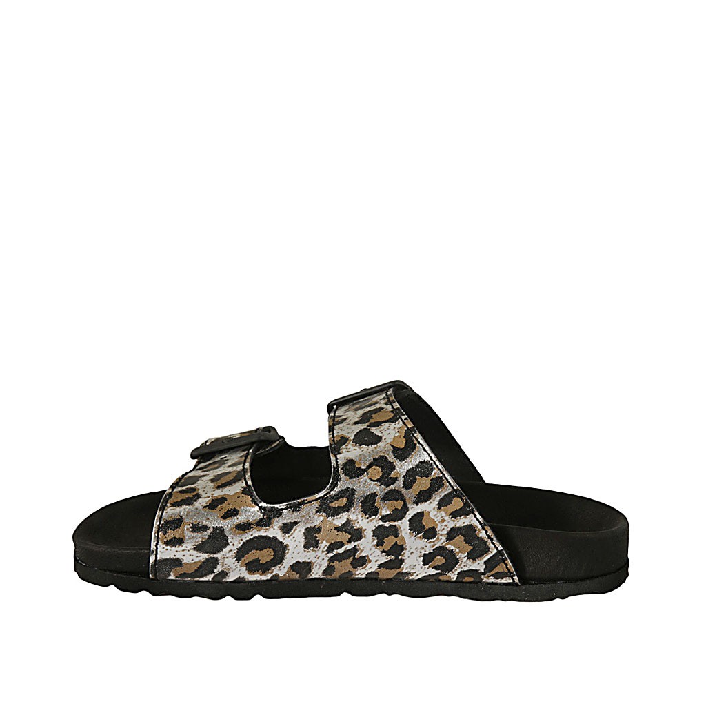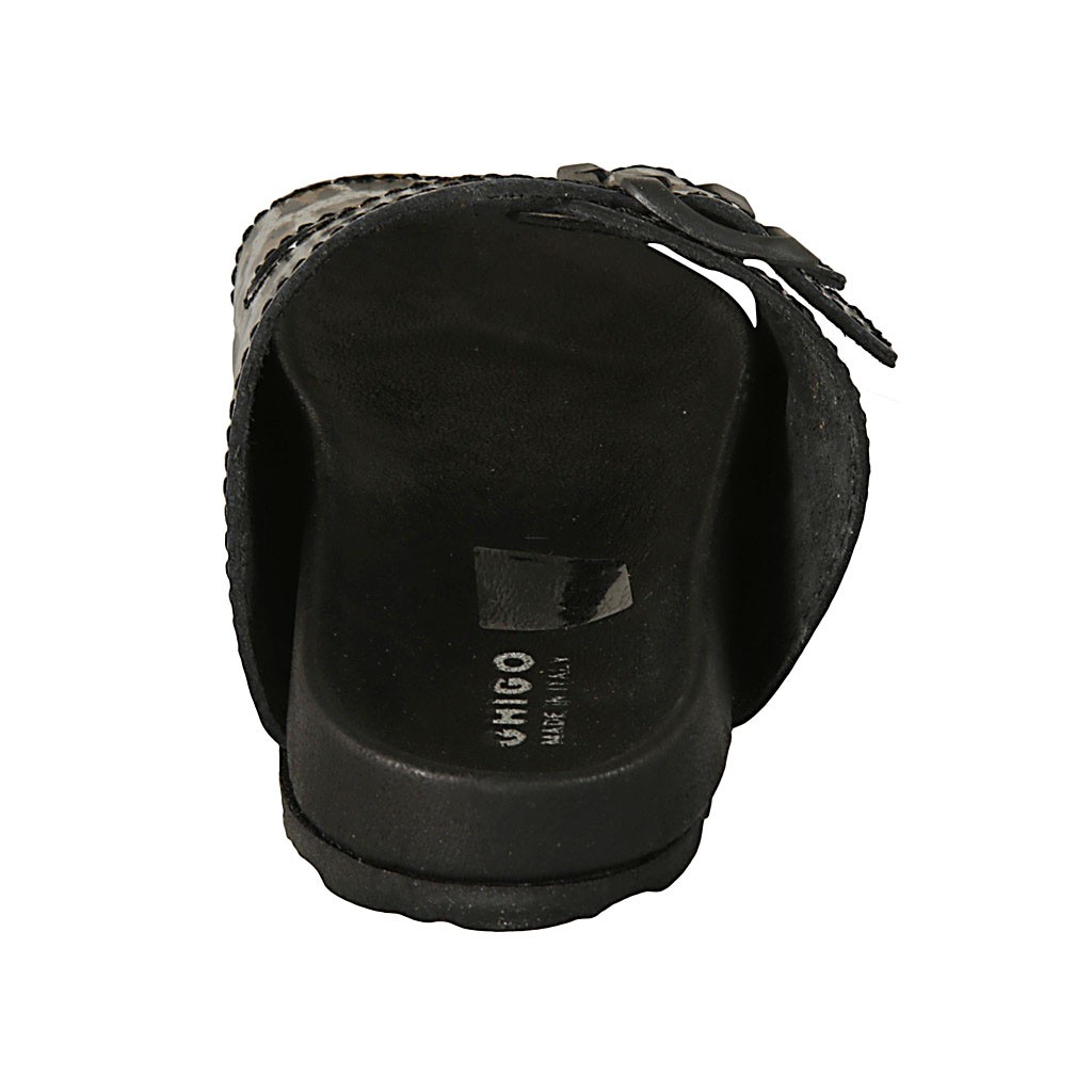 Woman's open mules with buckles in spotted laminated leather wedge heel 2
