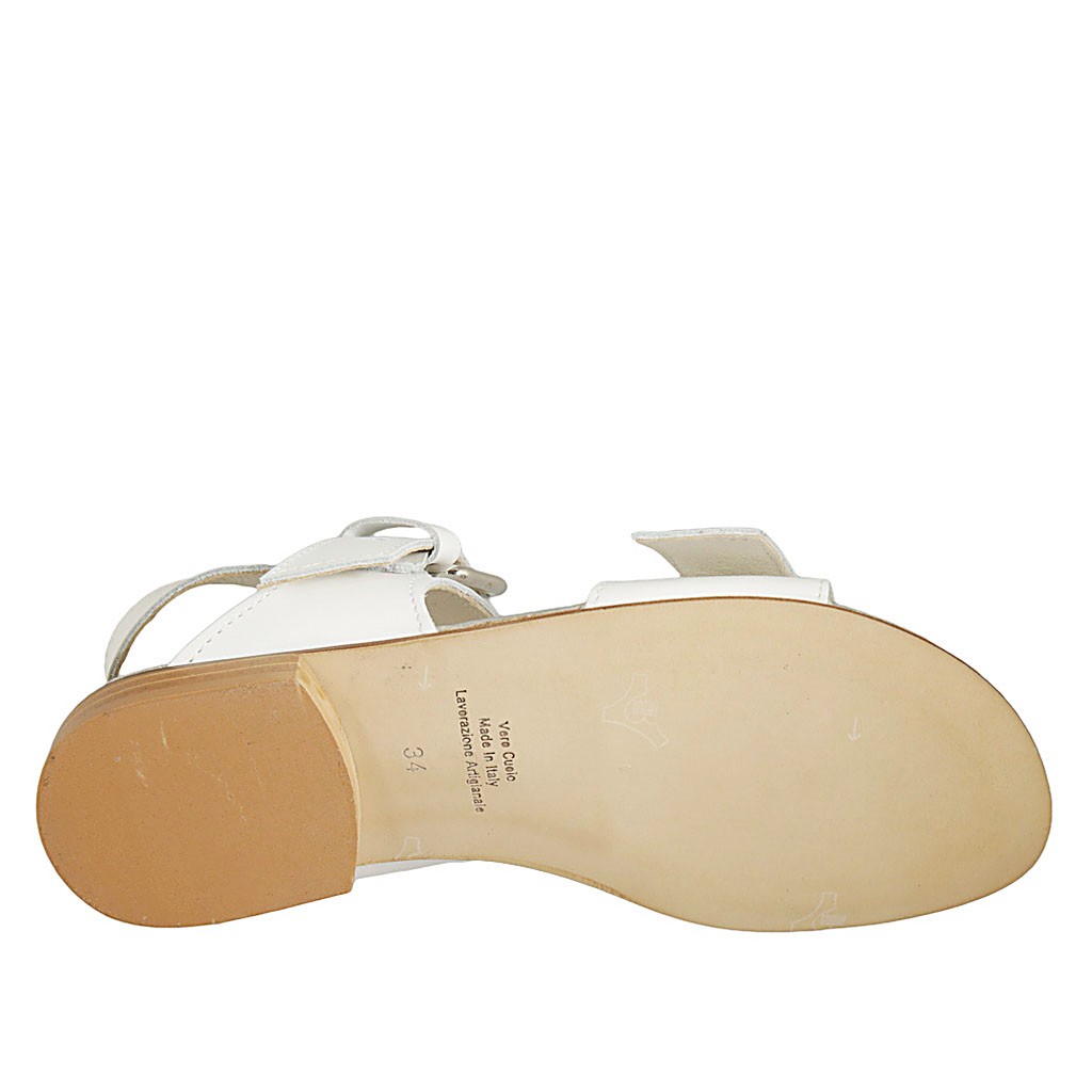 Woman's sandal with buckles in white leather heel 2