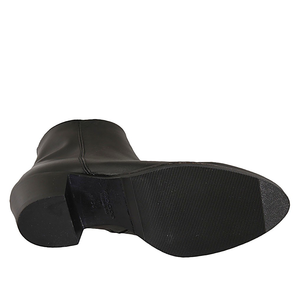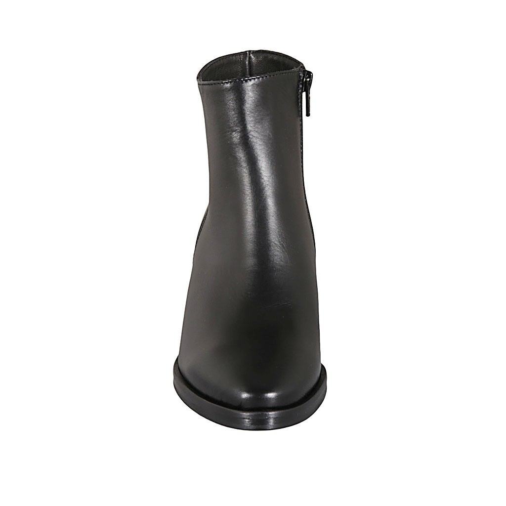 Woman's Texan ankle boot with zipper in black leather heel 5
