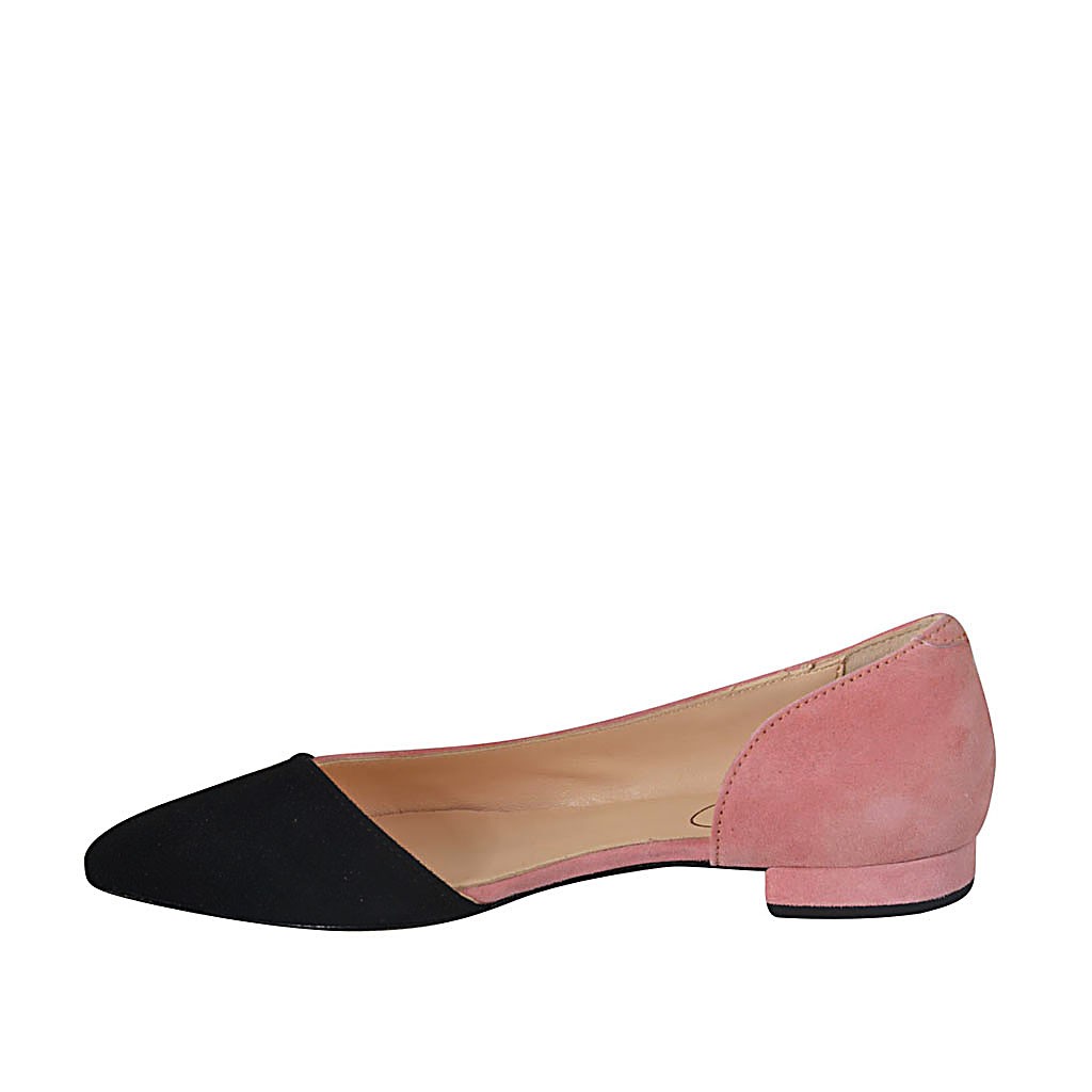 Scarpa aperta al lato da donna in camoscio nero e rosa tacco 2