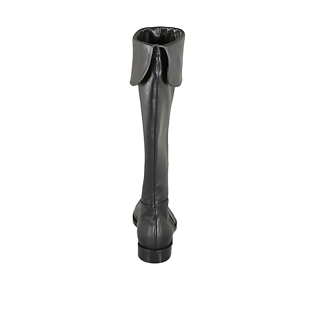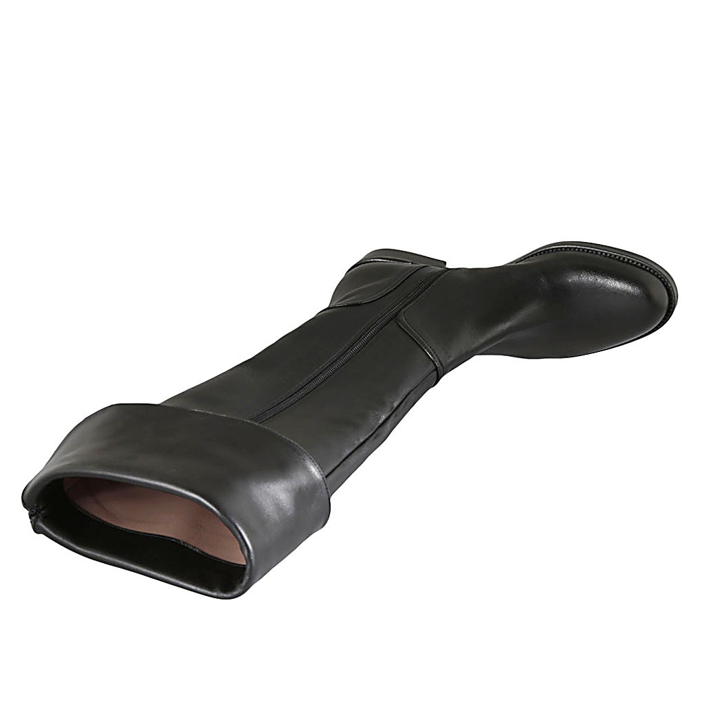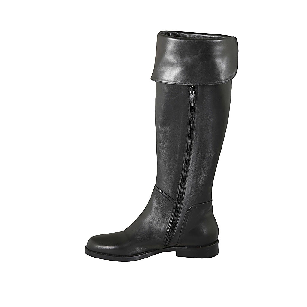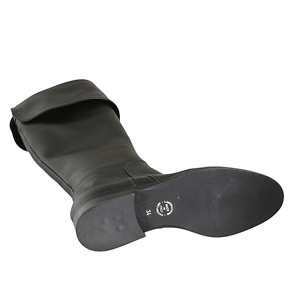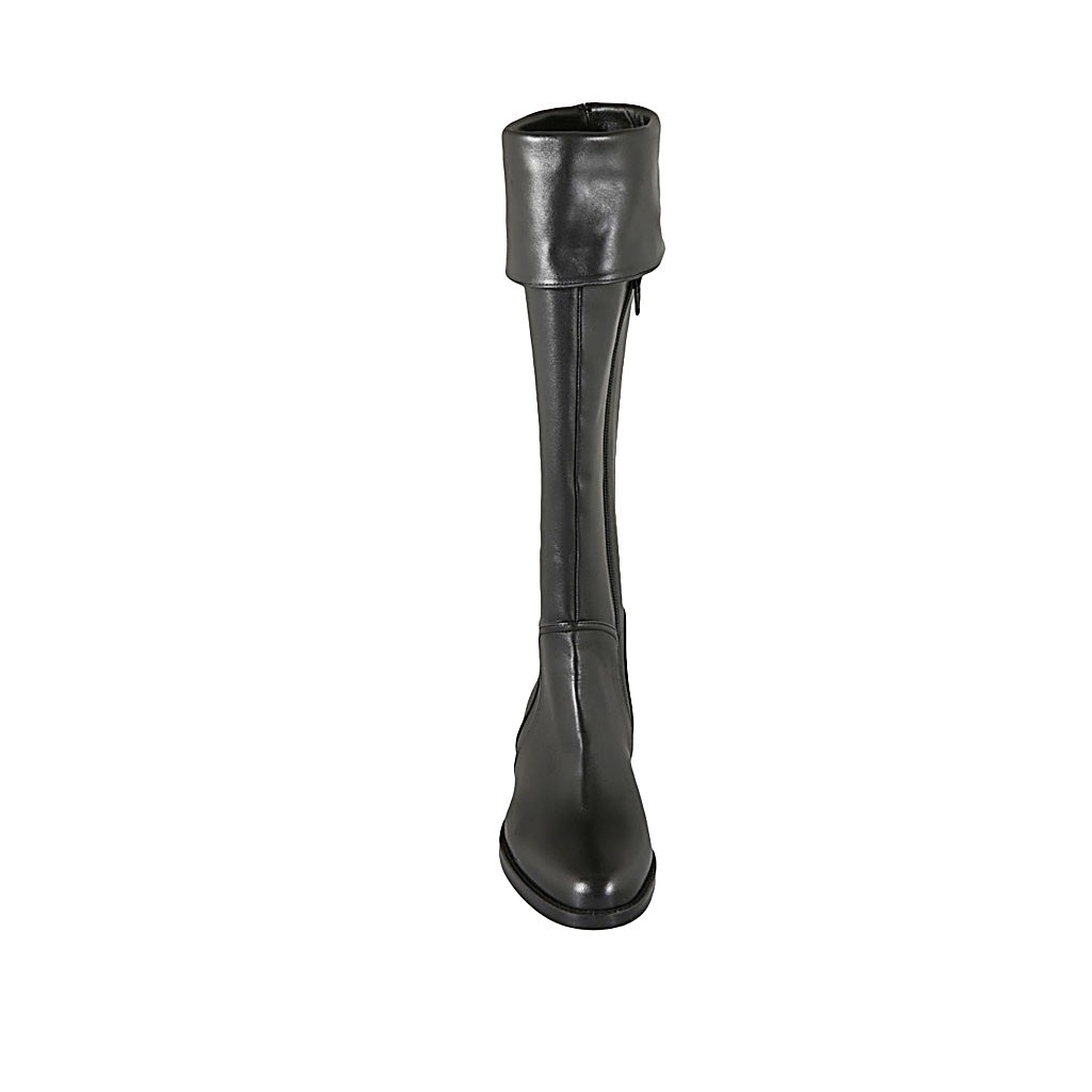 Woman's boot with turnover and zipper in black leather heel 3