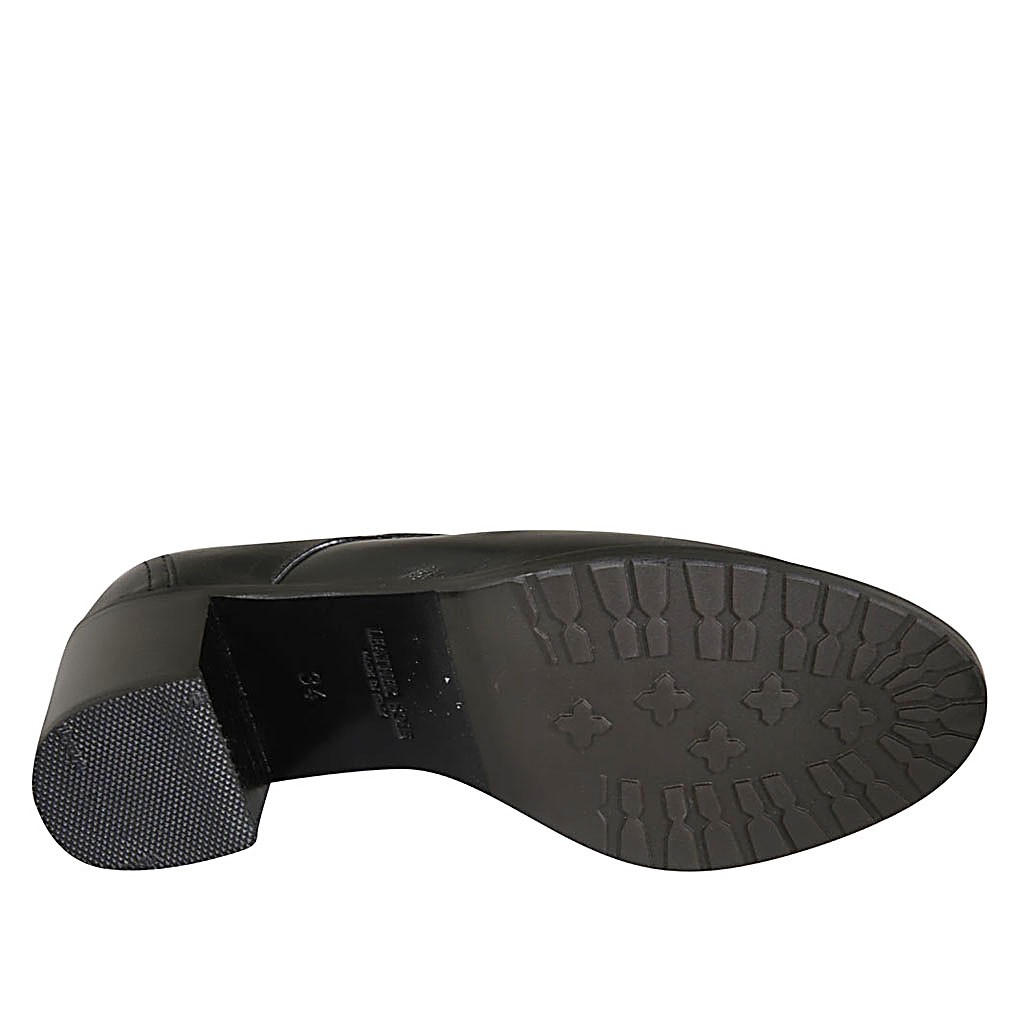 Woman's derby laced shoe in black leather heel 6